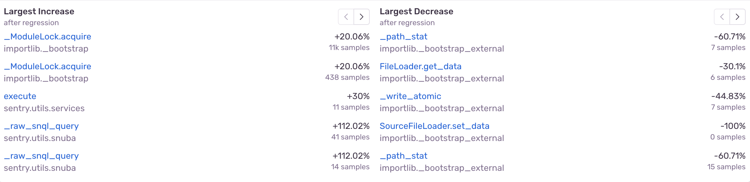 `` Here's an example of what our module lock problem looks like when using the profiling data from after the regression has occurred as the source of truth: